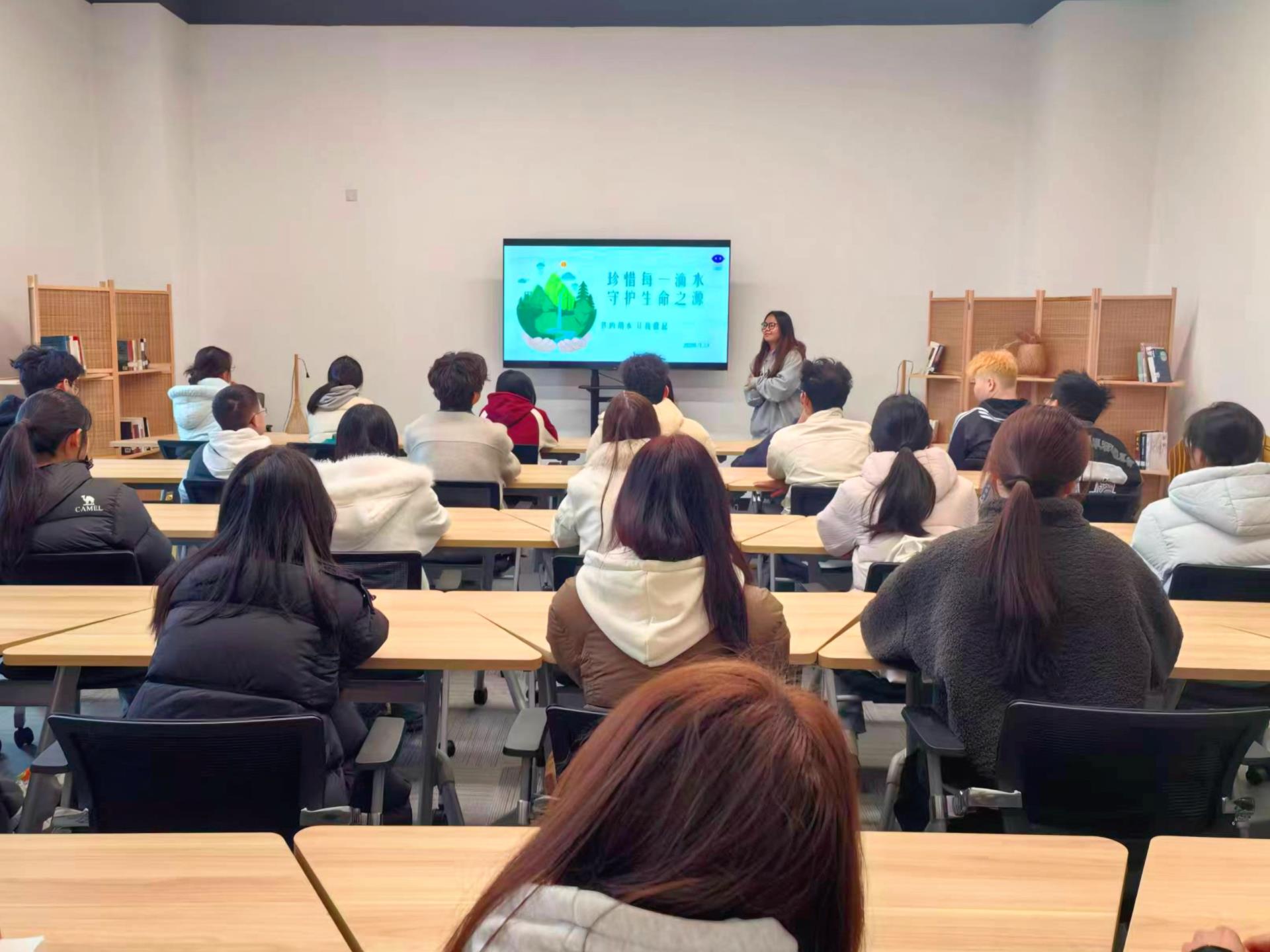 本次活动由图书馆学生助理团队杨锐同学主持,围绕“世界水日的由来”“全球水资源危机”“国水资源的真实困境”以及“我们身边的节水行动”四个话题展开,通过数据解读、影像展示、互动问答等形式,带领同学们从认知走向觉醒,从觉醒走向行动。